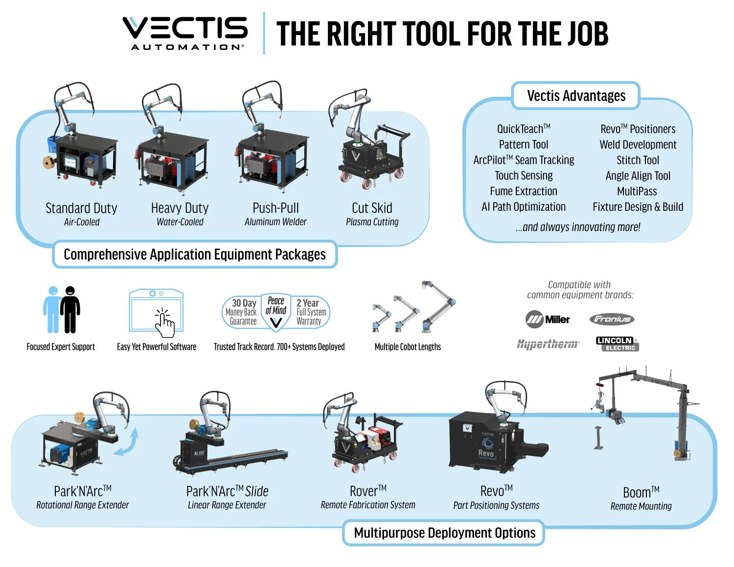 Available with Miller, Lincoln, or Fronius equipment, and multiple deployment styles.
